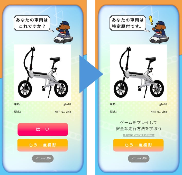 ・乗りたい車両をスマホカメラで撮影、または画像をアップロードするだけで、特定原付か否か