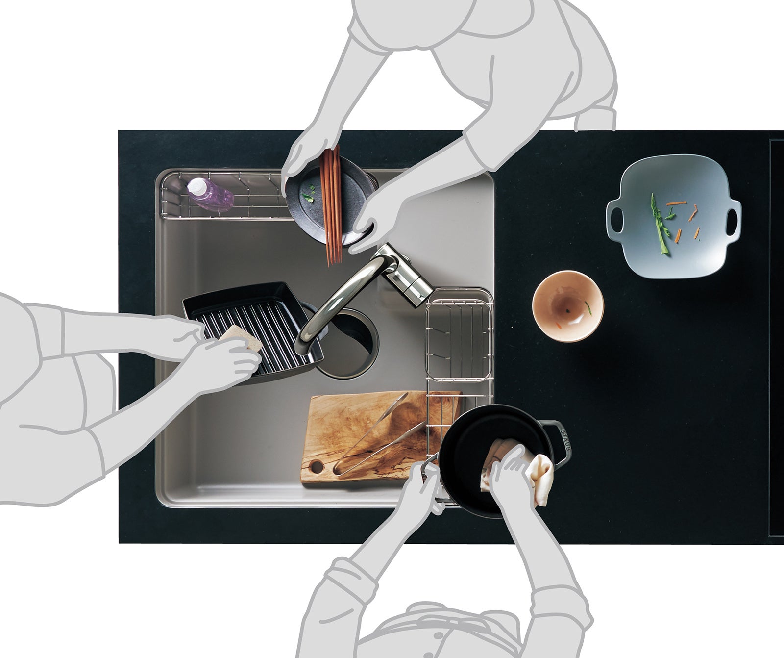 ※5 間口2,550 mm(コンロ:俵型IH、シンク:ラクするーシンク)と間口2,250 mm(コンロ:フラットワイドコンロ、シンク:ラウンドアクセスシンク)との比較による。