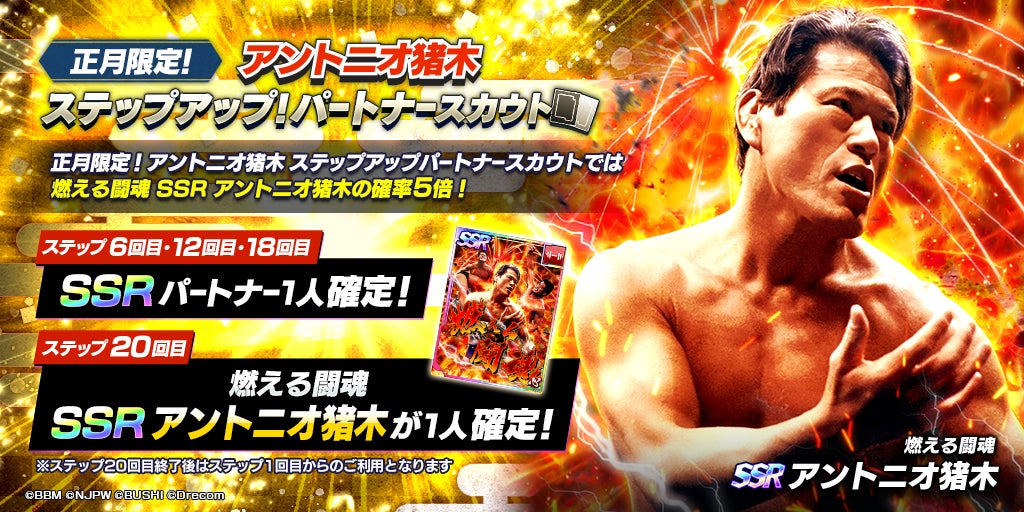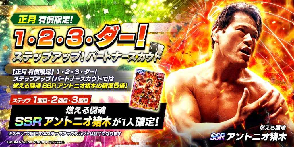 - SSR「[燃える闘魂]アントニオ 猪木」が登場する正月限定ステップアップパートナースカウトを開催!