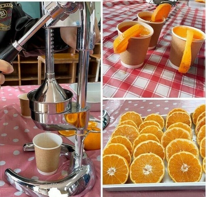 みかん収穫後は、圧搾機を使って100%フレッシュなみかんジュースが試飲でき、大人も子どもも楽しめるイベントです。