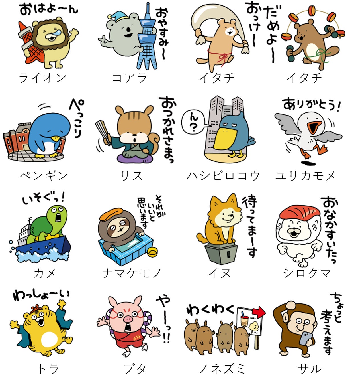 にしむらゆうじさん描き下ろしのかわいい動物たちが、東京を象徴する名所や文化を紹介する、日常に寄り添う使いやすいメッセージのスタンプをお楽しみください。