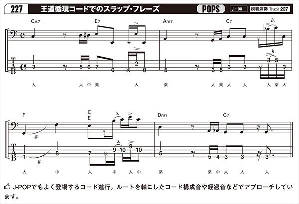 多様なジャンル/リズム/コード進行に柔軟に対応できて、練習用にも実践用でも使えるスラップ・フレーズが、この本に300本掲載されています(模範演奏音源はすべてストリーミング/ダウンロード対応)。