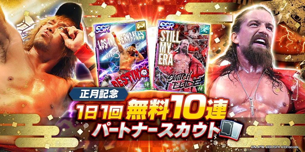 ブシモ『新日本プロレスSTRONG SPIRITS』お正月期間中1日1回の無料10連スカウトや1.4を記念したRTキャンペーン等の実施についてお知らせ