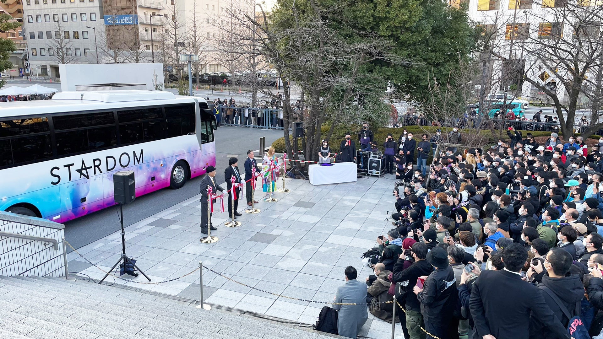 株式会社ブシロード(本社:東京都中野区、代表取締役社長:木谷高明)のグループ会社であり、女子プロレス『スターダム』を運営する株式会社ブシロードファイト(本社:東京都中野区、代表取締役社長:原田克彦)は、2022年12月29日(木)、『JRA中山競馬場 presents STARDOM DREAM QUEENDOM 2022』両国国技館大会の開場にて、新規導入した“STARDOM選手バス”のお披露目&テープカットセレモニーを実施したことをお知らせ致します。また、STARDOMの年内最終戦となるビッグマッチ『JRA中山競馬場 presents STARDOM DREAM QUEENDOM 2022』両国国技館大会は、入場者数3,808名のお客様にお集まりいただくなか、STARDOM最高峰の“赤いベルト”ワールド・オブ・スターダム選手権試合を挑戦者・ジュリア選手が戴冠するなど新時代の到来を予感させる歴史的イベントとなり幕を閉じました。