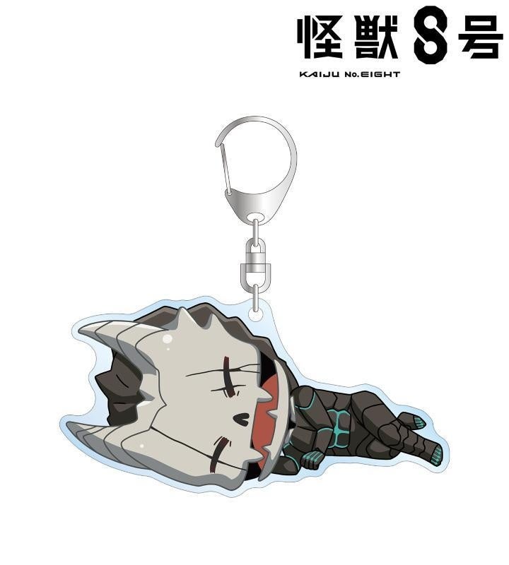 怪獣8号、日比野カフカ、市川レノ、四ノ宮キコル、亜白ミナ、保科宗四郎、古橋伊春、出雲ハルイチ、神楽木葵がころんと寝ているちびキャラを新たに描き起こし、BIGなアクリルキーホルダーに仕上げました。