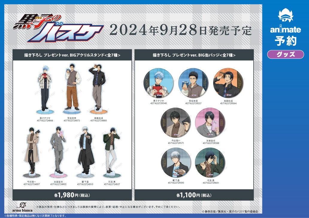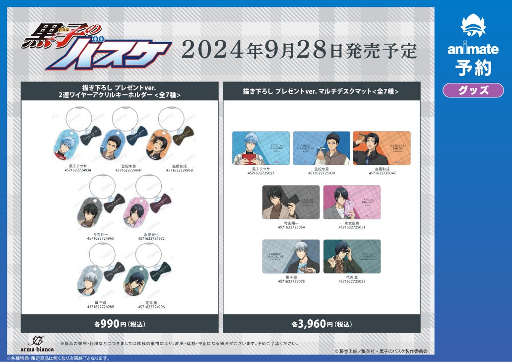 2024年9月28日(土)より全国アニメイトにて「『黒子のバスケ』アニメイトフェア」の実施が決定いたしました。