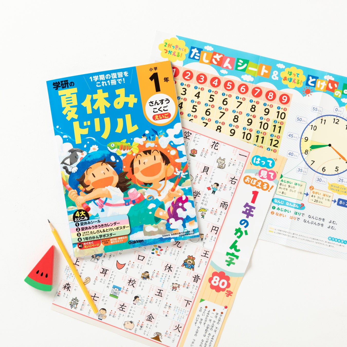 また、とじ込みの「夏休みうきうきカレンダー」と「ドリルシール」を使って、自分の学習の進捗や、夏のがんばりをしっかり管理・記録できます。オールカラーのポスターも充実しており、2学期先取り学習のサポートもバッチリです。