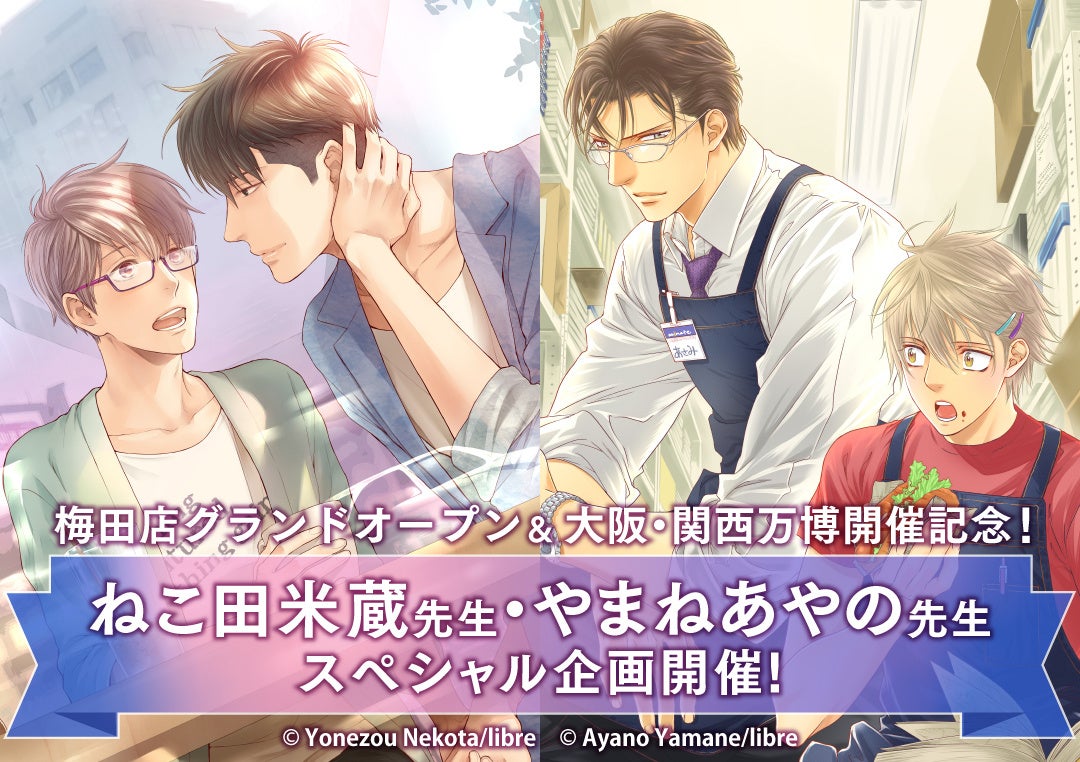 ねこ田米蔵先生・やまねあやの先生スペシャル企画が3月28日から開催!梅田店グランドオープン&大阪・関西万博開催を記念して、トークショーやグラッテとのコラボなどを実施!