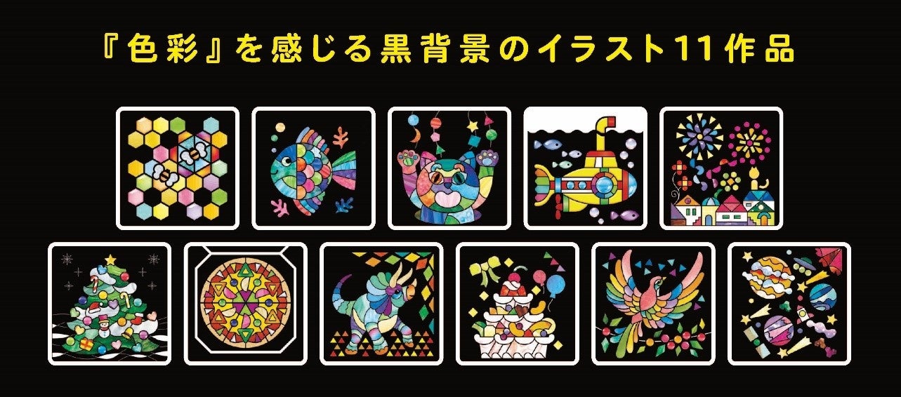 そんなシールパズル本から、これまでにない新シリーズが登場! 真っ黒な背景にカラフルなシールを貼って、ステンドグラス風のパズルを完成させます。