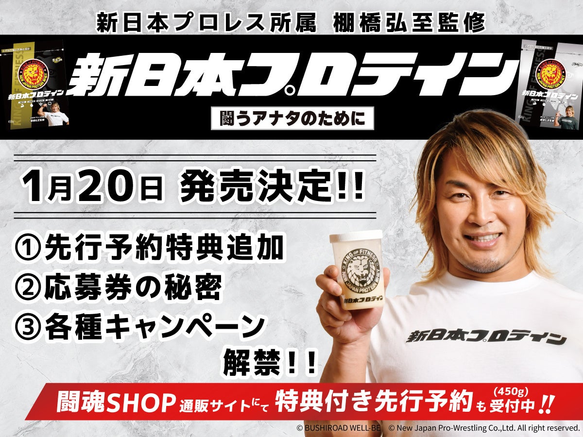 ブシロードウェルビーが新日本プロレスと共同開発した、棚橋弘至選手の監修のプロテイン『新日本プロテイン(450g)』の発売日が1月20日(金)に決定いたしました!
