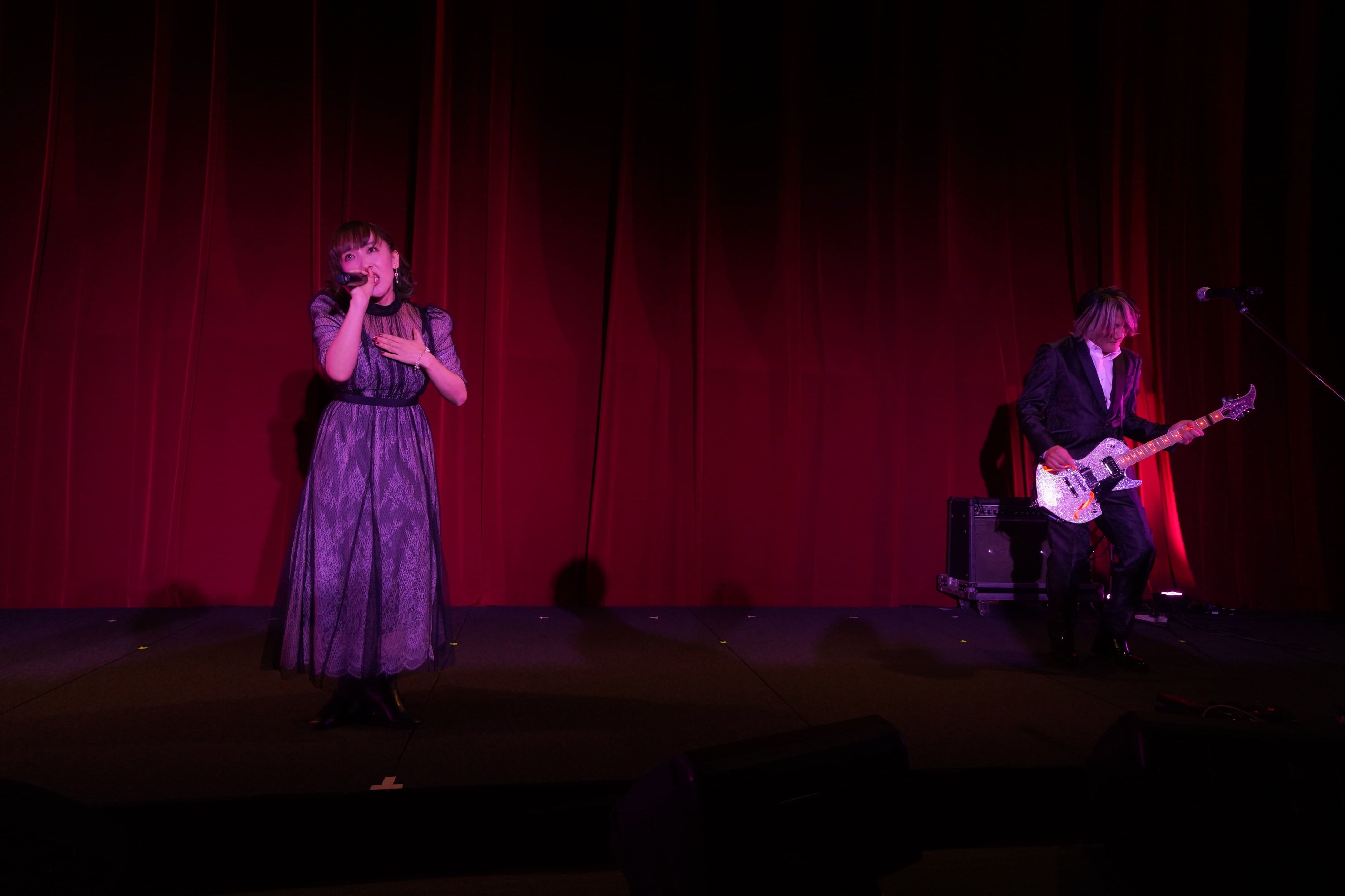 カノエラナさんがあげたボルテージはそのままに、angelaのふたりが登壇。ギターの準備中にトークでつなぎ、自然な流れでライブパートに移行するという、ベテランの風格を見せた。主題歌「ひとひらの未来」を、圧倒的な歌唱力とパフォーマンスで披露し、会場からは声援が出せない代わりに、非常に気持ちがこもった拍手が鳴り響いた。