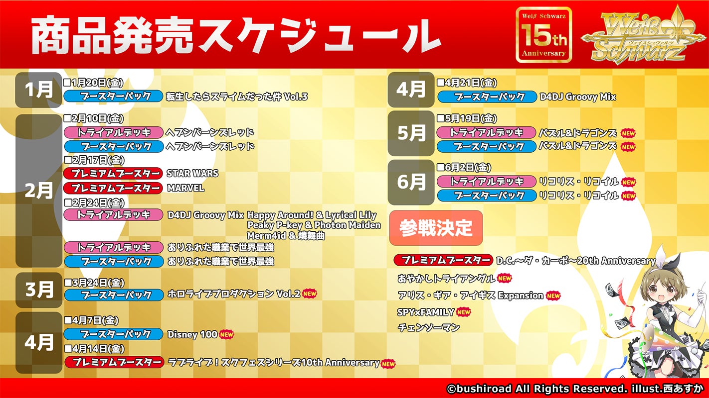 3月21日(火・祝)開催の「ヴァイスシュヴァルツ15周年記念発表会」に抽選で500名様を無料ご招待!今後のイベントや商品情報の発表のほか、展示やトークショーやミニライブも開催のスペシャルな発表会です!