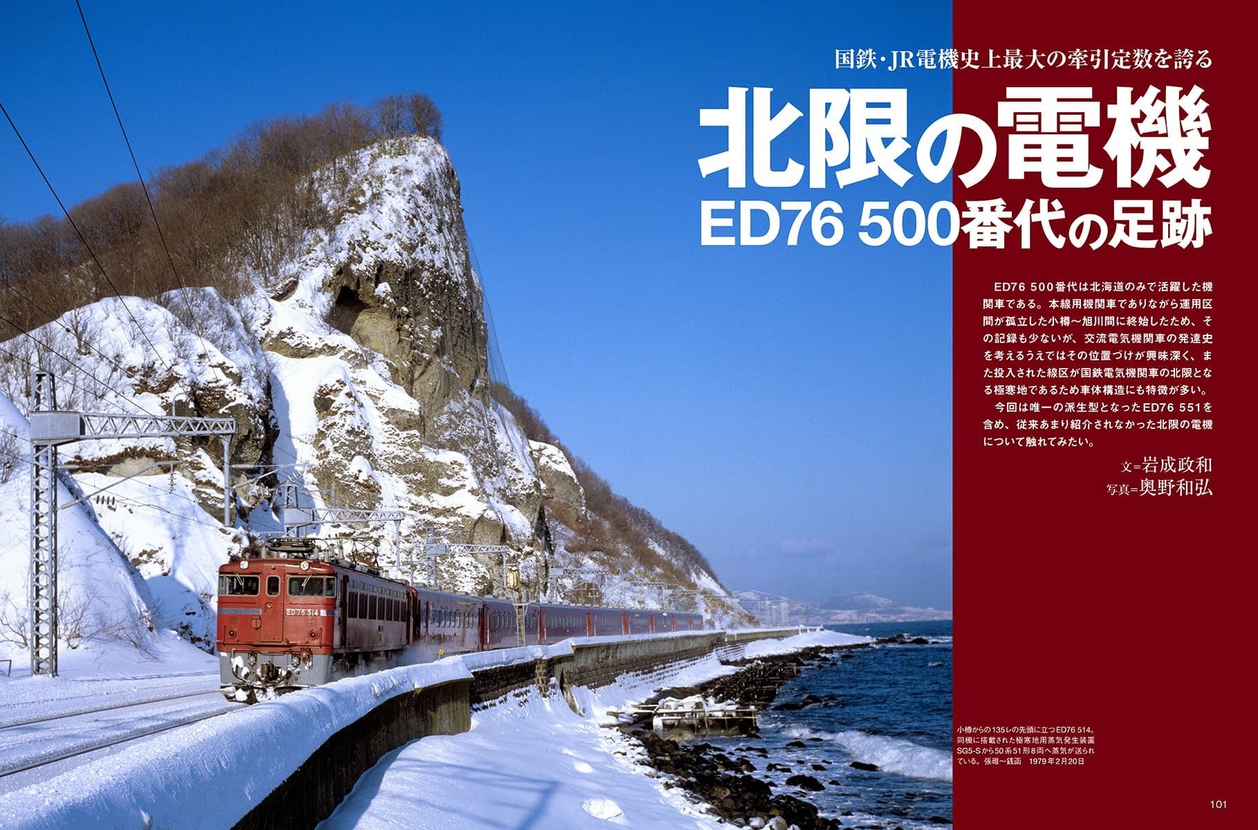 国鉄北海道総局に本格的に導入された電気機関車がED76 500番代。先駆者ED75 501の試験結果をもとに22両が誕生し客貨列車の牽引を務めました。今回は初号機の誕生から津軽海峡線に転じた551号機までの33年間を振り返ります。あわせて小樽市総合博物館で新展示を開始した509号機も紹介しています。