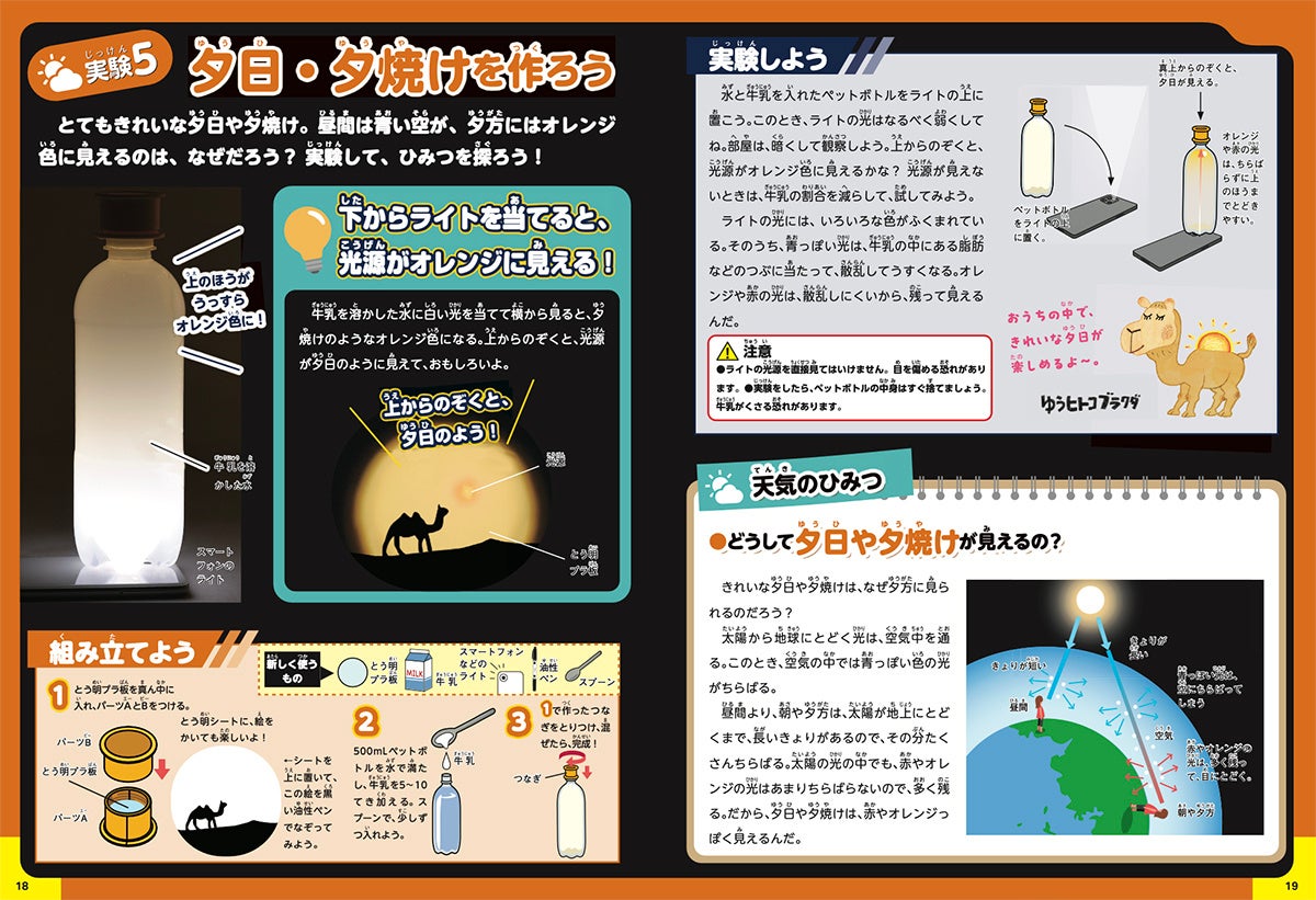 ガイドブックでは、実験のやり方だけでなく、トルネードや虹、雲などが発生するしくみを豊富なイラストで、わかりやすく解説!