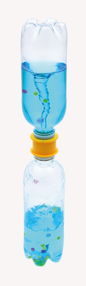 ①トルネード:うずを作って観察するだけでなく、かざりを入れて、オリジナル工作も楽しめます。