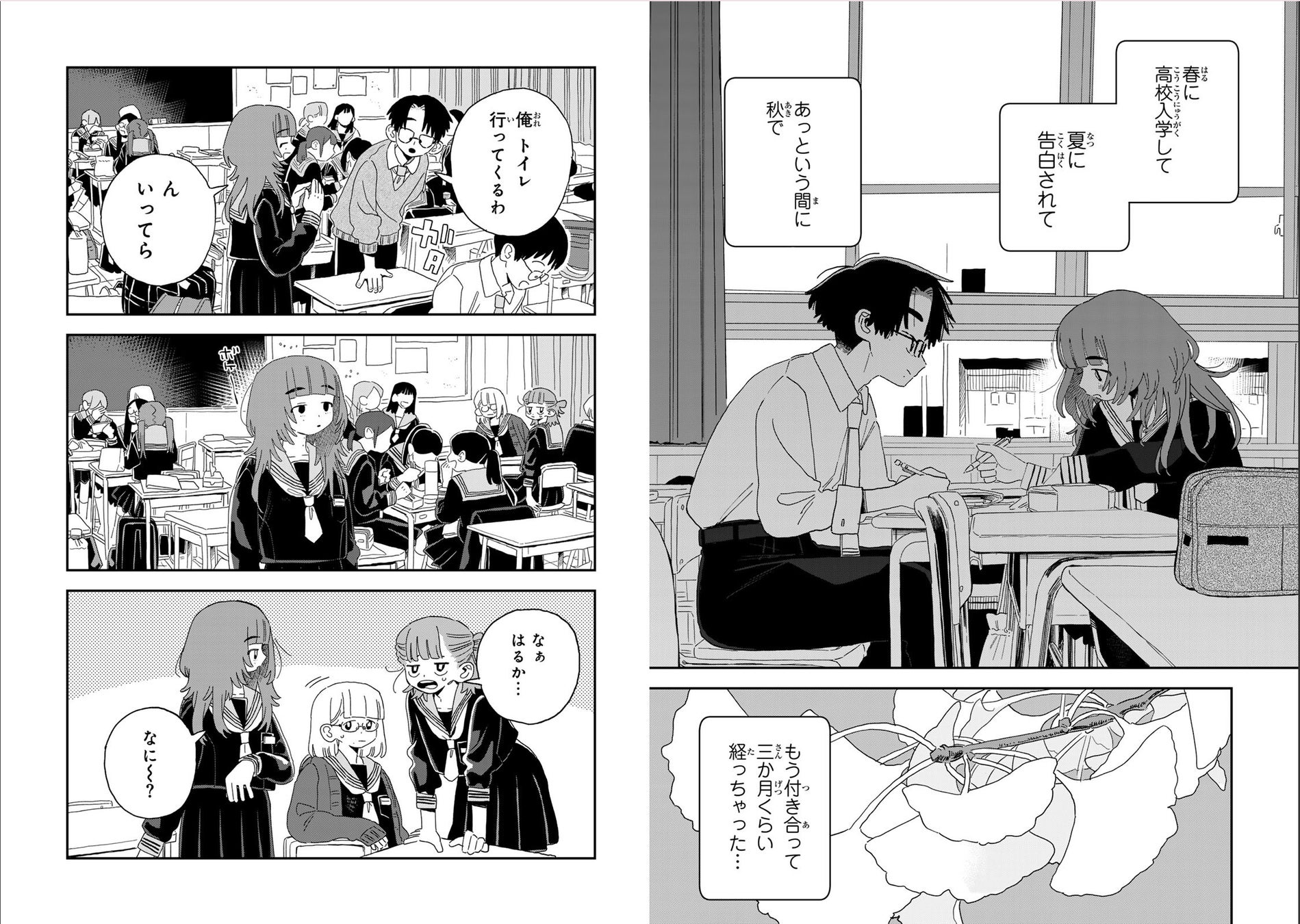 高校1年生の夏、人生で初めて告白されたはるか。以前にいじめから助けてくれた人でもある彼と、そのままの流れで付き合うことになる。付き合って3ヶ月がたち、2人の関係を心配する友達の声も耳に入らないはるかだったが・・・。