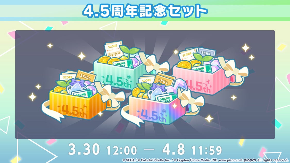 2025年3月30日(日)に『プロジェクトセカイ』がサービス開始4.5周年を迎えることを記念して、さまざまなイベントを開催いたします。