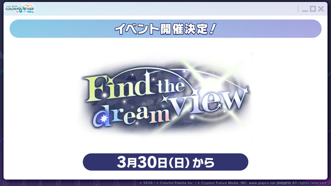 ゲーム内イベント「Find the dream view」を開催いたします。また、ブルームフェスティバル限定の新メンバーとして、望月穂波、巡音ルカの2名が登場するほか、イベントガチャの期間限定メンバーとなる星乃一歌、日野森志歩、初音ミクの3名が先行登場する「[4.5周年記念]ブルームフェスティバルガチャ ドリームピック」も開催予定です。
