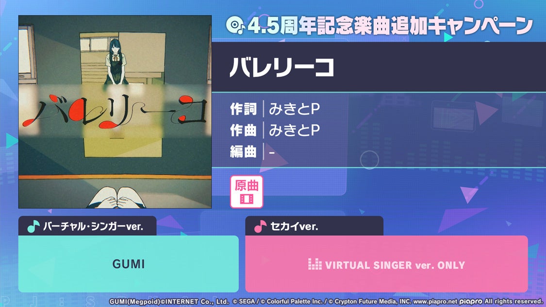 著作権表記:© SEGA / © Colorful Palette Inc. / © Crypton Future Media, INC. www.piapro.net All rights reserved.