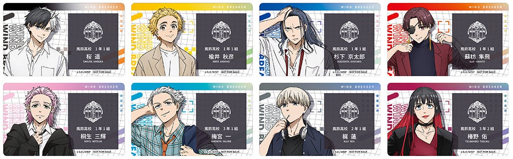 全国アニメイト・アニメイト通販で4月5日~4月27日まで開催する「TVアニメ『WIND BREAKER』Season 2 放送記念フェア」では、『WIND BREAKER』関連のグッズをご購入・ご予約内金1,100円(税込)毎、または書籍・CD・Blu-ray・DVDをご購入・ご予約(内金1,100円〈税込〉以上必須)1点毎に、特典「名刺カード(全8種)」を1枚プレゼントいたします。特典の絵柄は、「カジュアルスーツ」を身に着けた桜や楡井たち8人の描き下ろしイラストです。