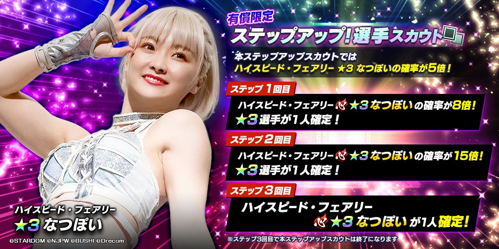 - スターダムから、★3選手なつぽいが初登場!STARDOM限定ステップアップ選手スカウトを開催!