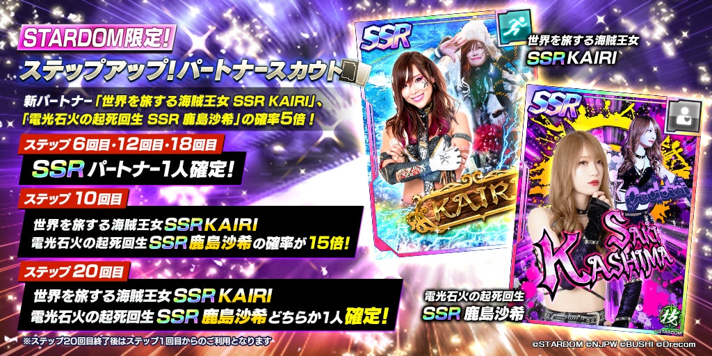 - スターダムから、SSRパートナーKAIRIと鹿島沙希が初登場!STARDOM限定ステップアップパートナースカウトを開催!