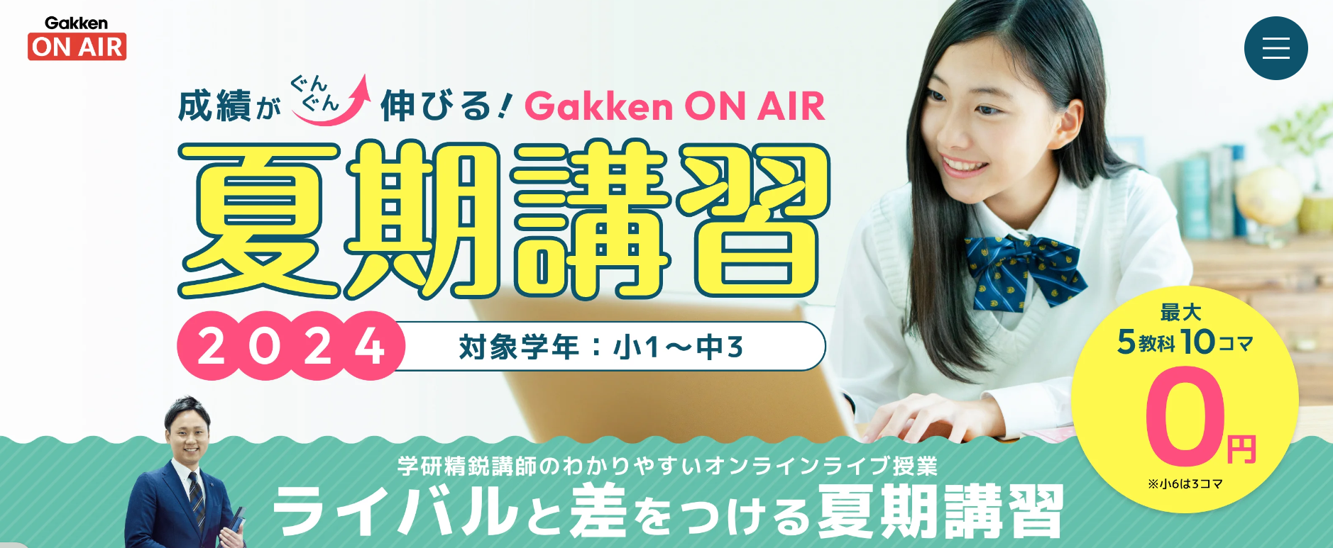 全国どこからでも受講できるオンライン塾「学研オンエア」では、6月より夏期講習のお申し込み受付を開始しています。