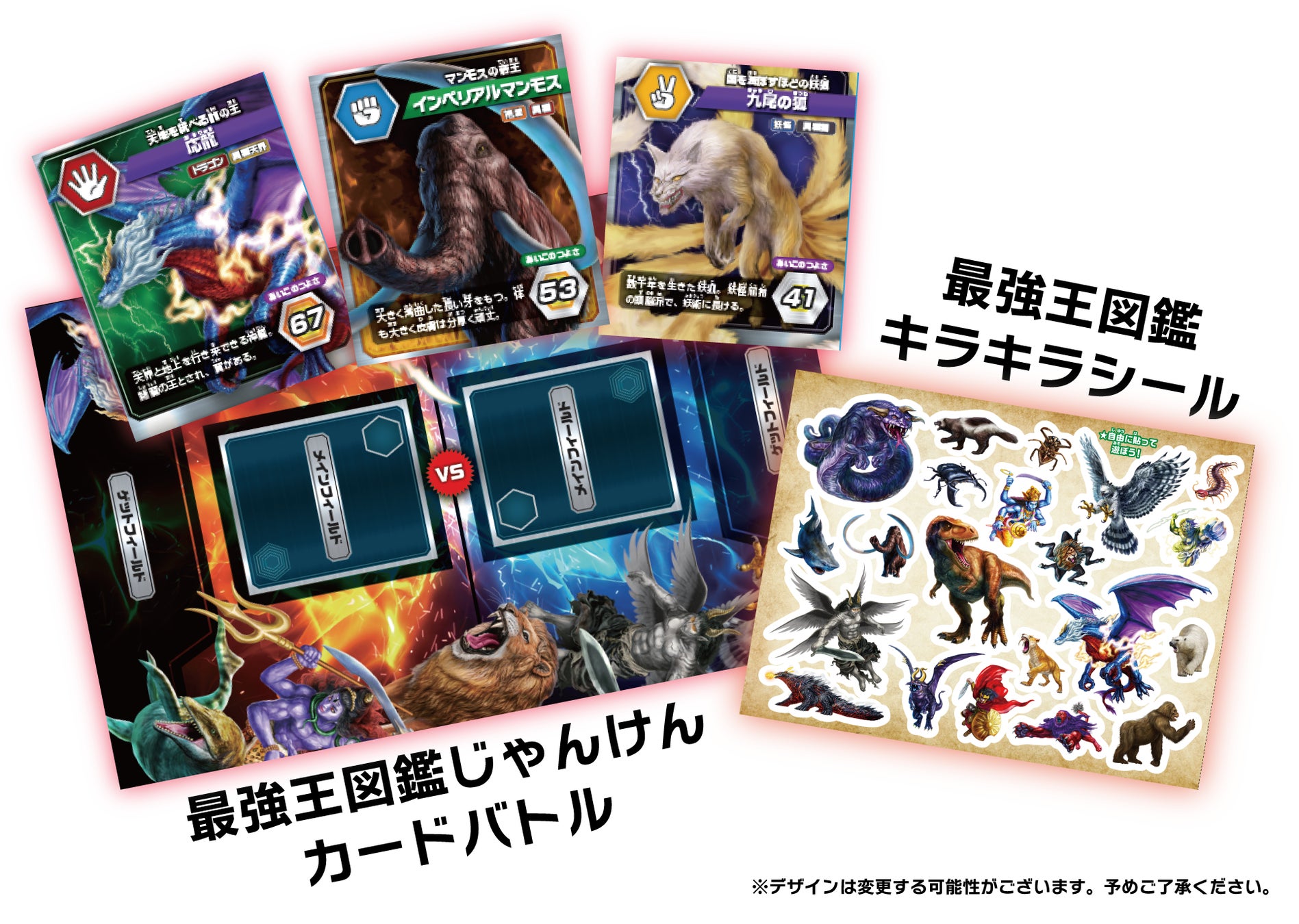 さらに、最強王同士で戦って遊べる【じゃんけんカードバトル】や、最強王の【キラキラシール】もついている!