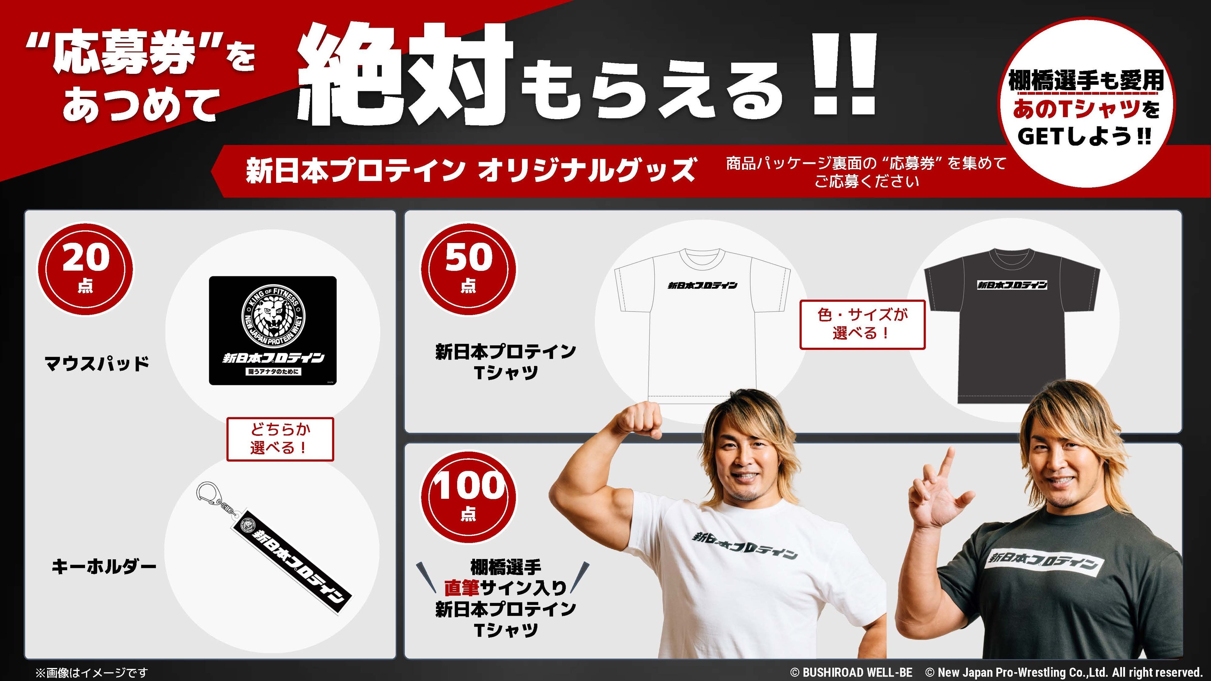 この応募券を集めると『新日本プロテイン』オリジナルグッズが必ずもらえる!!