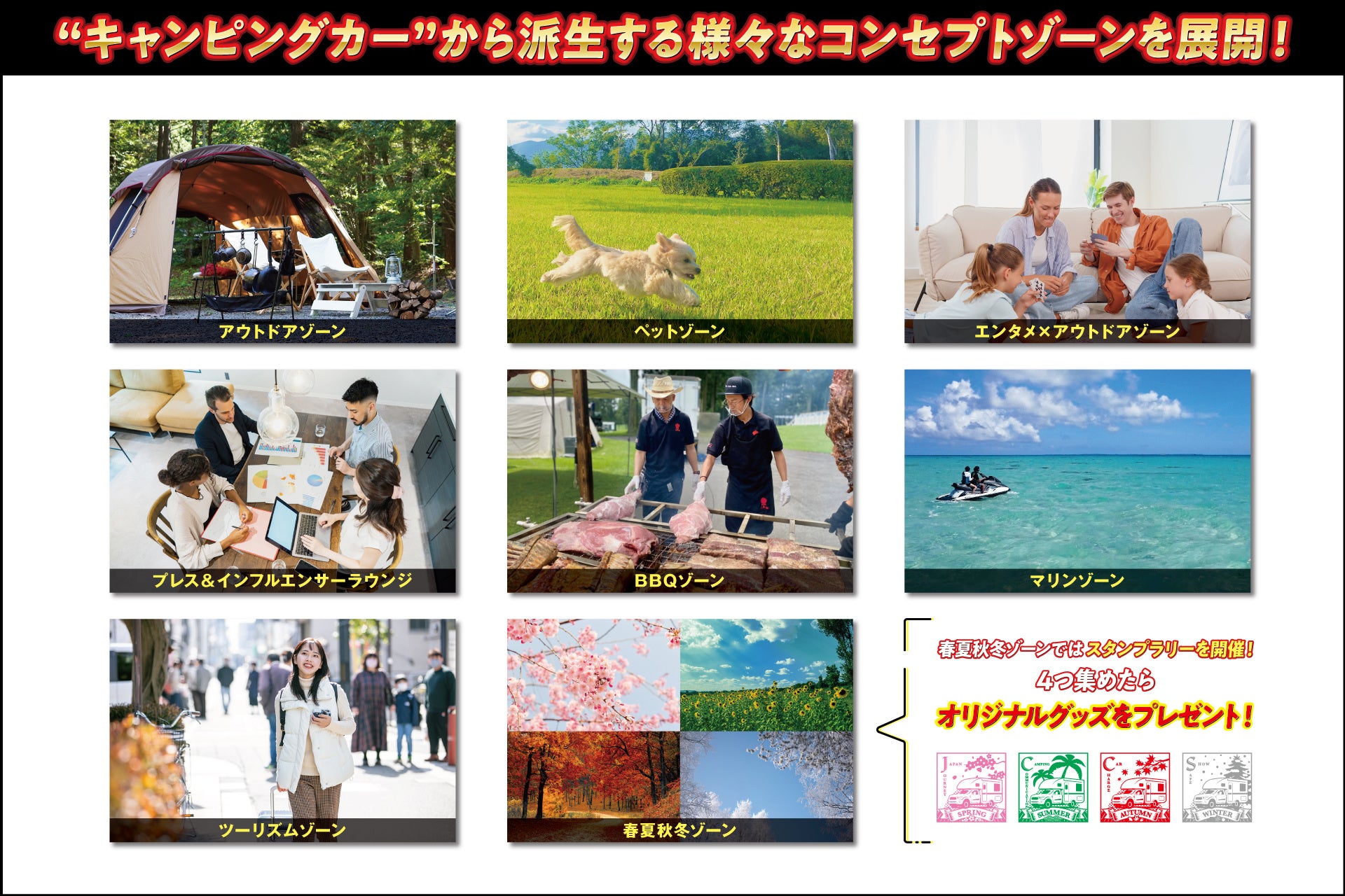 - キャンピングカー&アウトドアにちなんだコンセプトゾーンをイベント会場に展開!