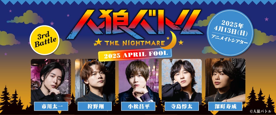 株式会社マリン・エンタテインメント(アニメイトグループ)より、アニメイトシアターにて開催した『人狼バトル THE NIGHTMARE 2025 APRIL FOOL』イベントのレポートをお届けします。