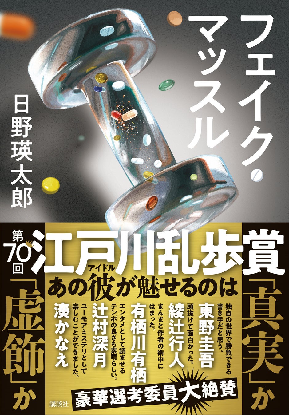 第70回を記念し、7人の豪華選考委員によって行われた江戸川乱歩賞選考会。東野圭吾氏、綾辻行人氏、有栖川有栖氏、真保裕一氏、辻村深月氏、貫井徳郎氏、湊かなえ氏という、日本小説界を代表する作家たちの圧倒的な支持を集めたのが本作『フェイク・マッスル』です。