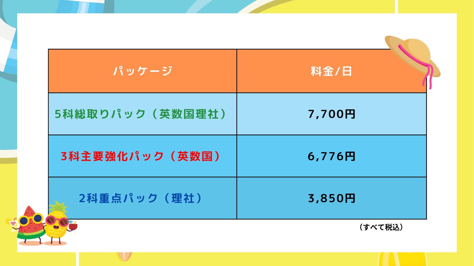ただし、「数学だけ」「数・理だけ」など、パッケージに該当しない受講はできません。