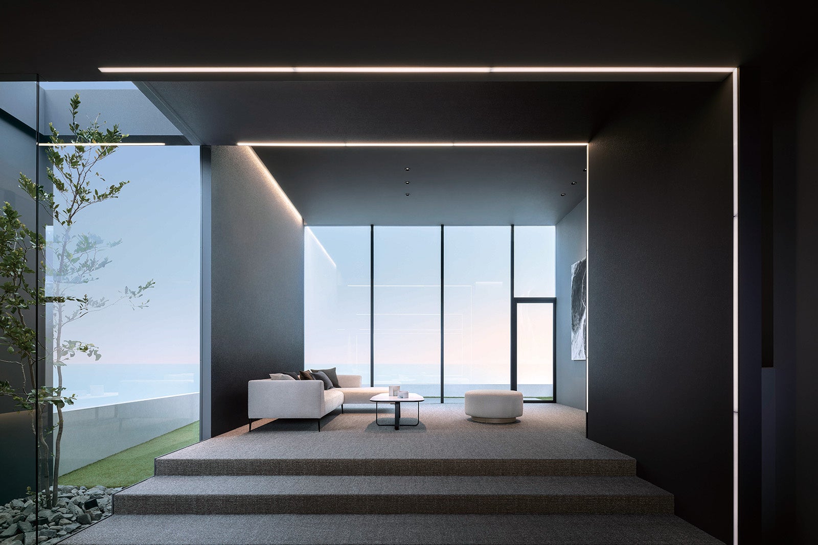 建築化照明は、天井や壁などに備え付け、部材として建築空間と一体化させて使用する照明器具です。造作に組み込むことで照明器具本体や発光面が見えない間接照明を作る場合などに用いられ、上質な光環境を提供します。しかし、従来の製品は本体や発光面を見せない設置を前提としており、外観デザインへの配慮が十分でない場合がありました。