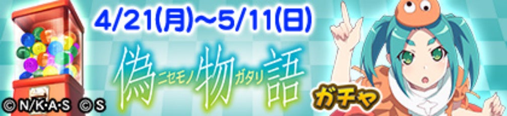 進化型SPキャラ(UR)「忍野忍2」や、進化型SPキャラ(SSR)「阿良々木火憐2」「阿良々木月火2」といった『パチンコ CR偽物語』に登場するキャラクターをはじめ、『パチンコ CR偽物語』をイメージしたアガリ演出、卓背景、EX枠、EX背景、BGMなどコラボアイテム全60種が期間限定で登場します。