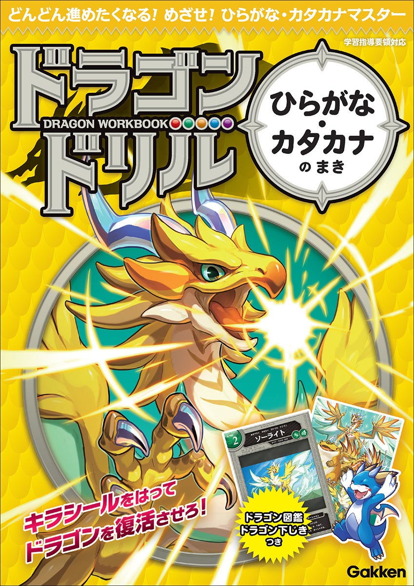 でっかいキラシール、ドラゴン図鑑、ドラゴンパズル……子どもが夢中になる要素満載で、ニガテな勉強が楽しくなる! カッコいいドラゴンたちと、ひらがな・カタカナを攻略しよう!