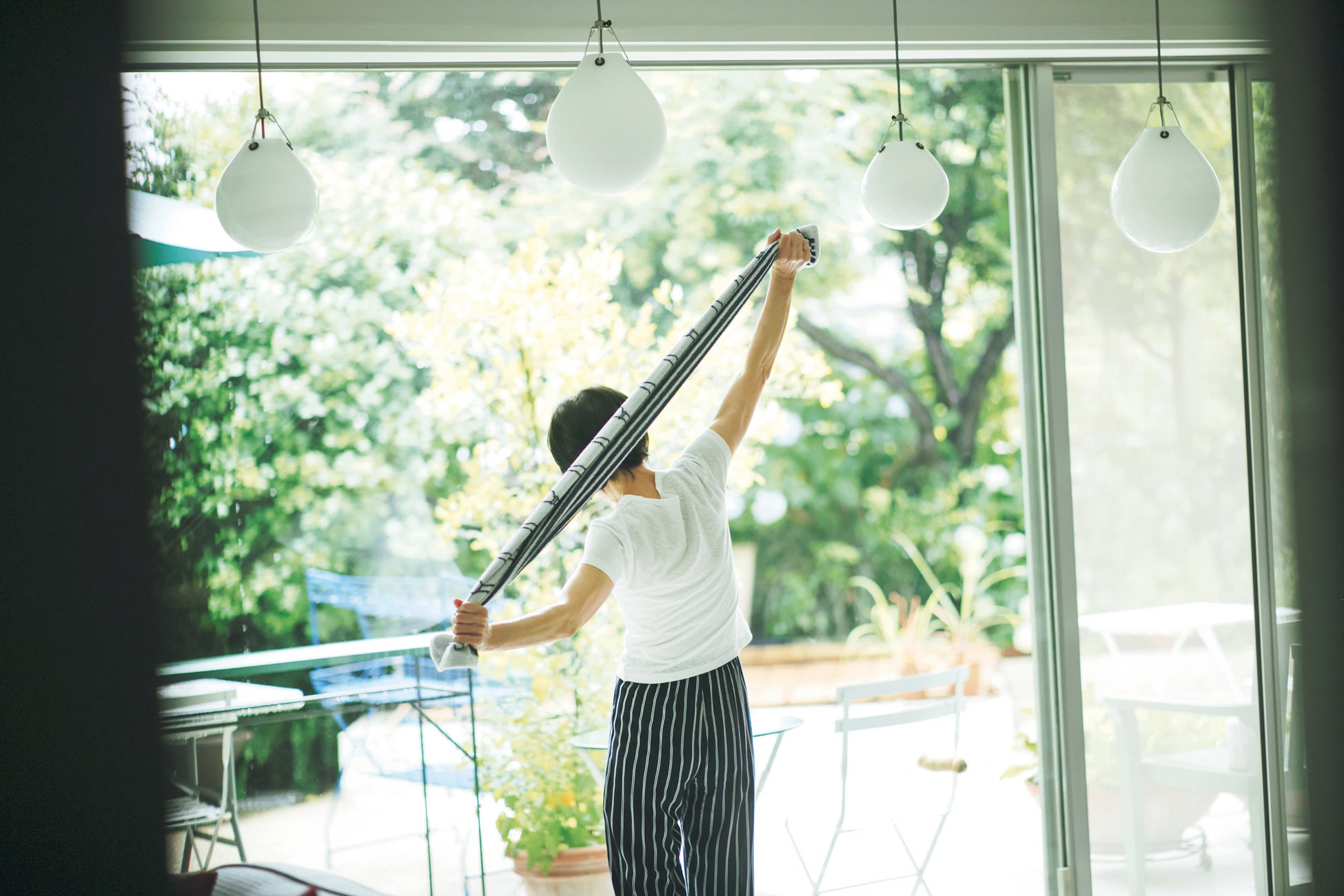 家のなかでも外でも、スニーカーを履かない日はない、という栗原さん。