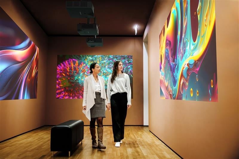 約1.72 mの距離で100型スクリーンへの投写が可能な短焦点型プロジェクター。デジタルミュージアムやゴルフシミュレーションなど、省スペースで大画面投写が求められる用途に最適。筐体樹脂部品の56%に再生材を採用、消費電力の削減や消耗部品の長寿命化など製品のライフサイクル全体でサステナビリティに配慮。