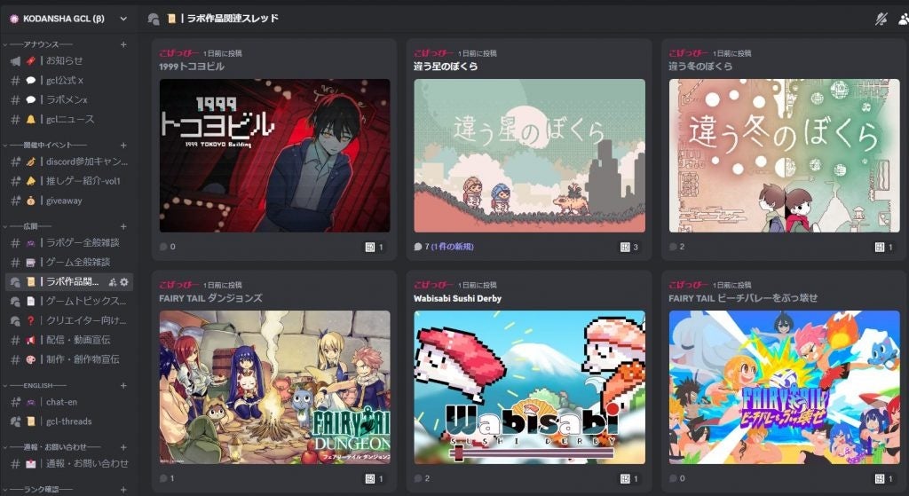 今日遊ぶゲームがここで見つかる講談社ゲームクリエイターズラボ公認Discordコミュニティ『KODANSHA GCL (β)』がオープン!