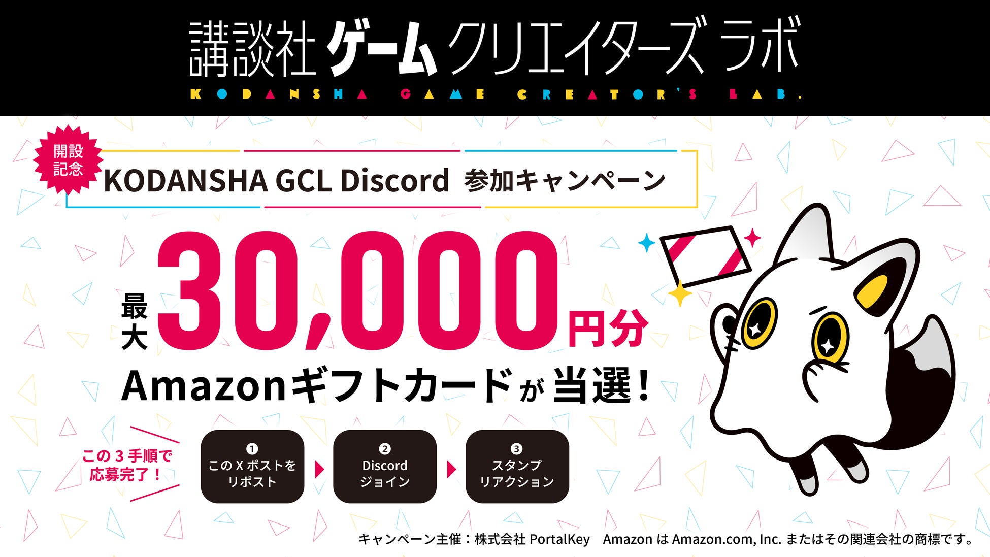 9/30までに所定のXをリポスト後、「KODANSHA GCL Disocrd」に参加し、絵文字をスタンプすることで、参加者の中から抽選で最大30,000円のAmazonギフトカードをプレゼント!