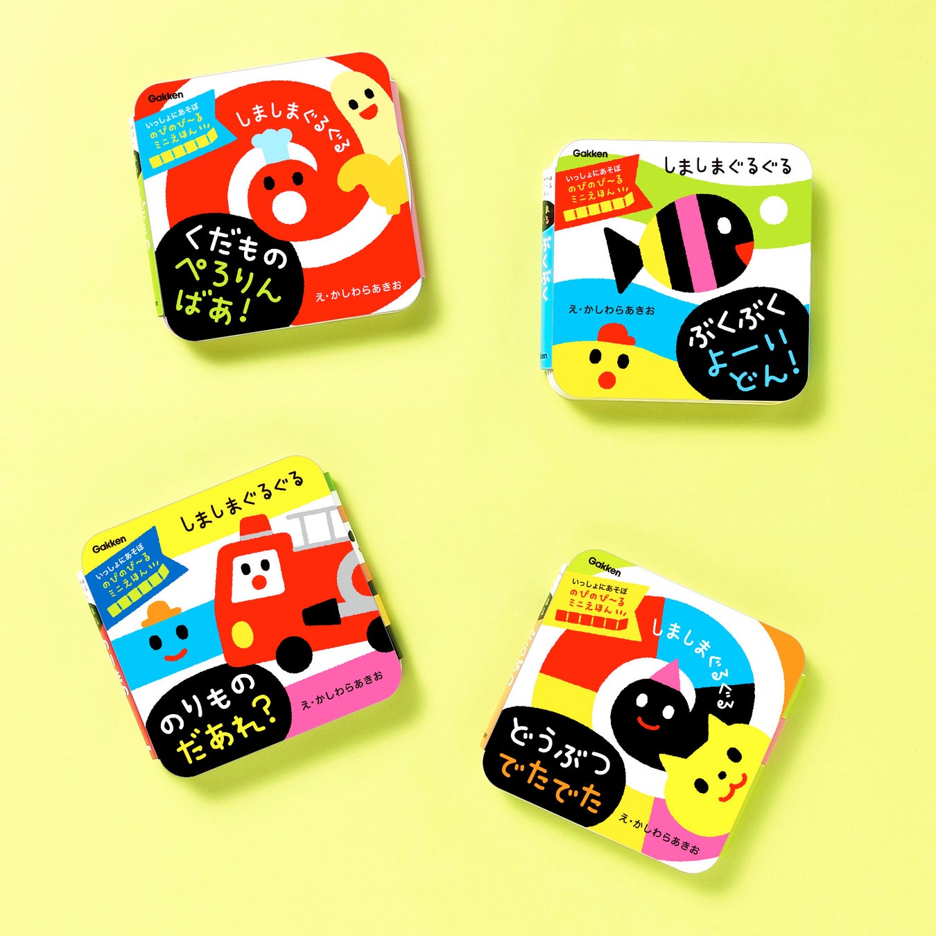 累計340万部突破の「いっしょにあそぼ」シリーズに、「しましまぐるぐる」の「どんどん伸ばしてとことん遊べる」ミニ絵本4種類が新登場!