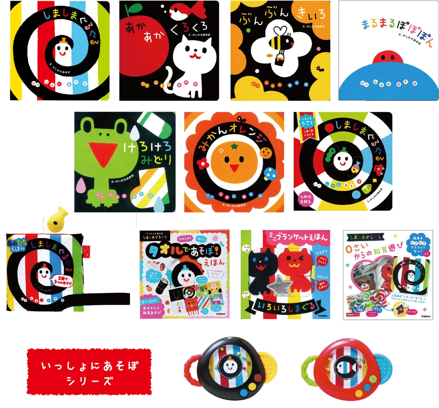 『しましまぐるぐる』をはじめとする、「いっしょにあそぼ」シリーズは、シリーズ累計発行部数340万部突破の赤ちゃんに大人気の絵本シリーズ。