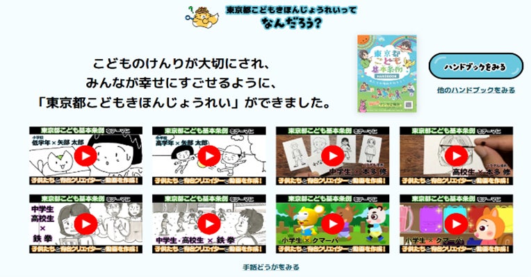 本条例ハンドブック」や「東京都こども基本条例解説動画」をサイト内で紹介しています。