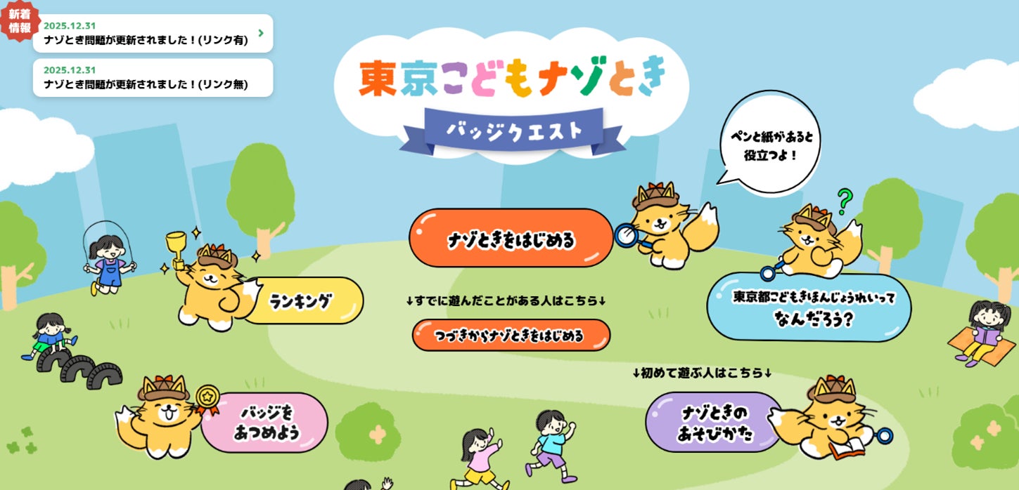 その一環として、このたび、小学校高学年を主な対象に、ナゾときを通じて条例の内容や関連する都の取組について楽しく学べるWEBコンテンツ「東京こどもナゾときバッジクエスト」を公開しました。
