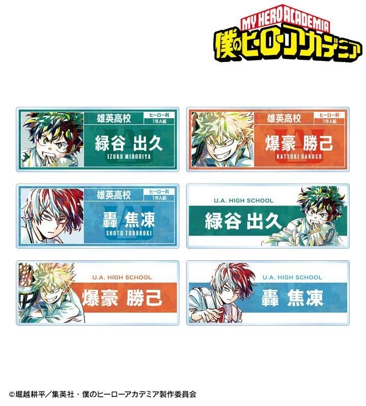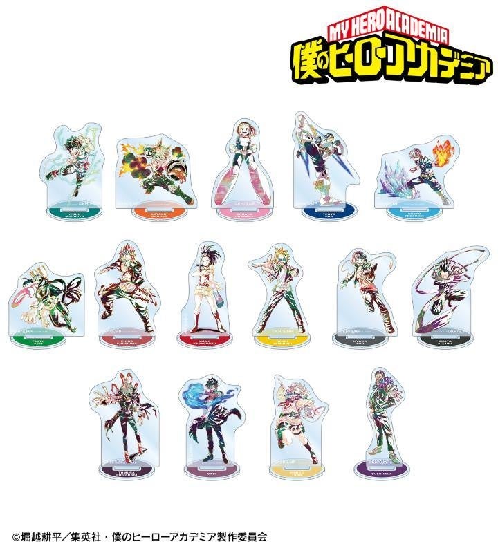緑谷出久、爆豪勝己、麗日お茶子、飯田天哉、轟焦凍、蛙吹梅雨、切島鋭児郎、八百万百、上鳴電気、耳郎響香、相澤消太、死柄木弔、荼毘、トガヒミコ、オーバーホールのビジュアルを新たなタッチで魅力的に表現し、ミニアクリルスタンドに仕上げました。