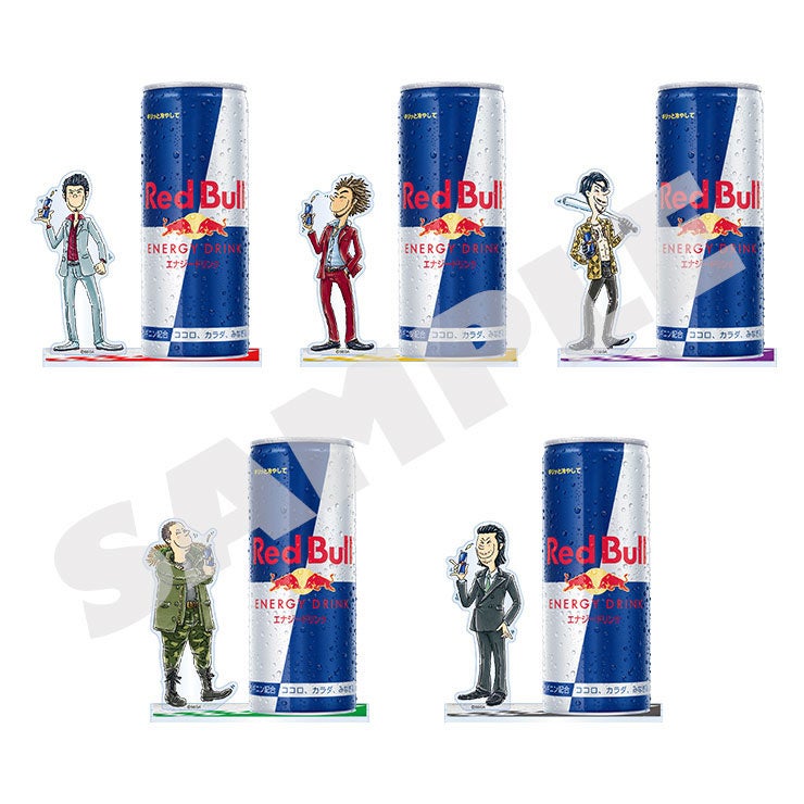 商品概要:レッドブル・ジャパン株式会社の「レッドブル・エナジードリンク」と「レッドブルを飾れるアクリルスタンド」がセットになったグッズが登場。描き下ろしのカートゥーンイラストを使用したアクリルスタンドは、桐生一馬、春日一番、真島吾朗、冴島大河、堂島大吾の全5種! ぜひ、レッドブル・エナジードリンクとアクリルスタンドを一緒に飾ってお楽しみください。