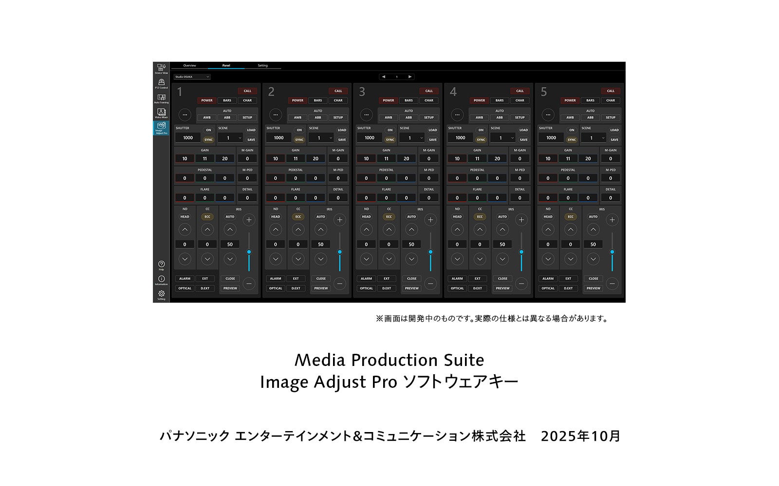 パナソニック エンターテインメント&コミュニケーション株式会社(本社:大阪府守口市、CEO:豊嶋 明、以下、パナソニック)は、ソフトウェアプラットフォーム「Media Production Suite」でPC/タブレットから複数台のスタジオカメラ・リモートカメラの画質調整を行えるImage Adjust Proプラグインを開発しました。本プラグインは2025年度第4四半期(*)の提供開始を予定しています。