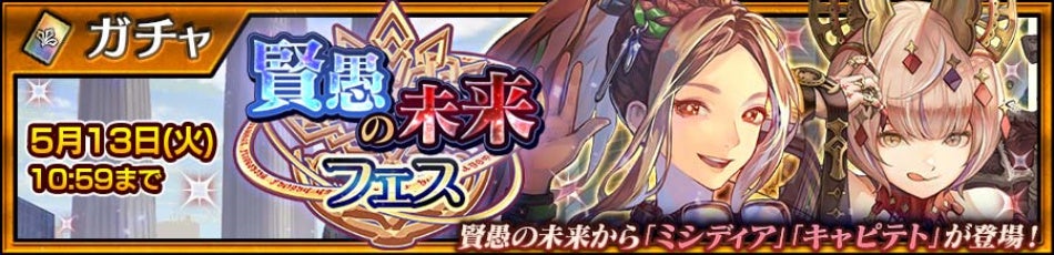 『チェインクロニクル第5部 ―未来への導標(しるべ)―』「賢愚の未来 中篇」配信開始!「ミシディア(CV:内田真礼)」と「キャピテト(CV:皆口裕子)」が登場する“賢愚の未来フェス”開催!