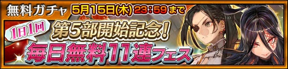 ■期間中、最大555回無料で引ける“第5部開始記念!毎日無料11連フェス”開催中!