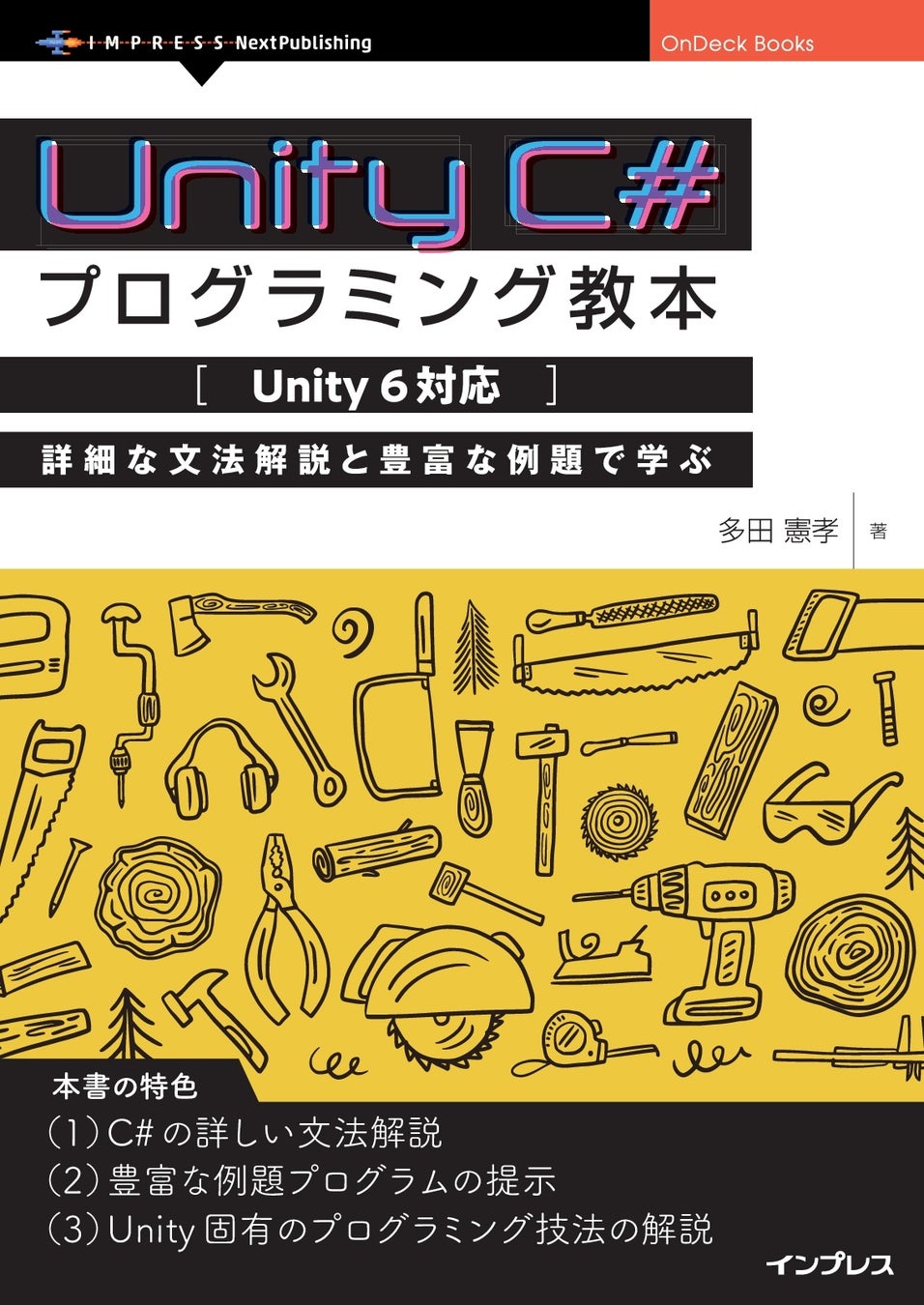 インプレスグループでIT関連メディア事業を展開する株式会社インプレス(本社:東京都千代田区、代表取締役社長:高橋隆志)は、『Unity C#プログラミング教本【Unity 6対応】 詳細な文法解説と豊富な例題で学ぶ』(著者:多田 憲孝)をインプレス NextPublishingより発行いたします。